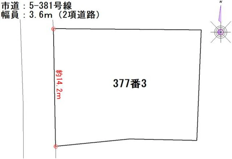 一方 西 間口14.2m 公道 幅3.6m |