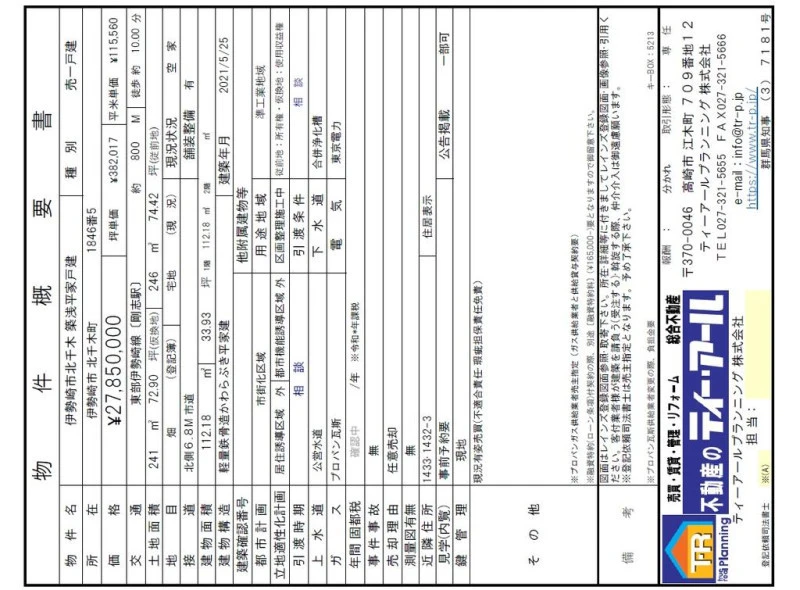 種目 | 中古一戸建て |