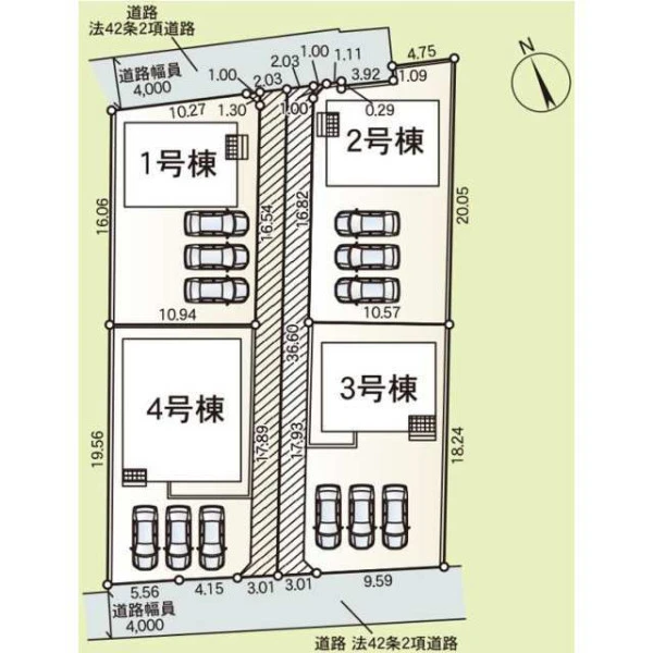 二方(除角地) 北 間口2m 公道 幅3.3m 位置指定無 南 間口12.7m 公道 幅3.2m 位置指定無 |