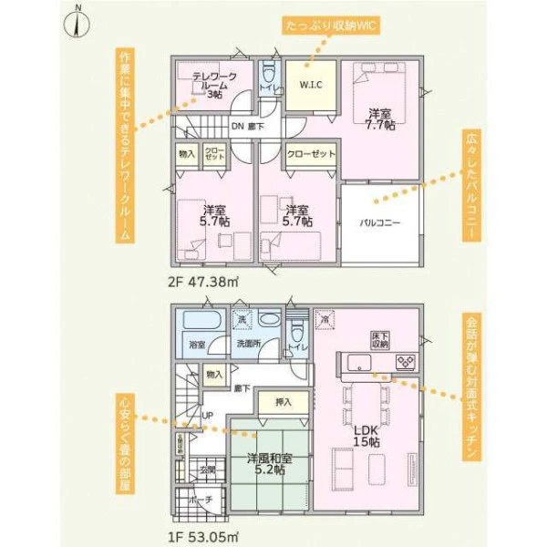 | 設備 | プロパンガス、電気、上水道、下水道、システムキッチン、カウンターキッチン、浄水器、給湯、トイレ2箇所、温水洗浄便座、シャンプードレッサー、浴室乾燥機、フローリング、複層ガラス、ルーフバルコニー、収納スペース、ウォークインクローゼット、床下収納、ディンプルキー、モニタ付インターホン、火災警報器等設置済、建設住宅性能評価取得(予定含む) | ||